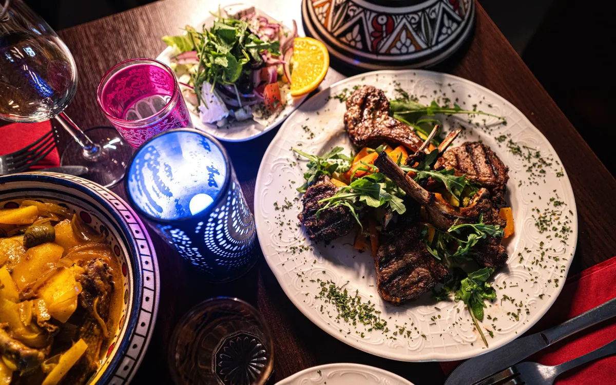 Alle specialiteiten en tajines worden geserveerd met salade en een bijgerecht.