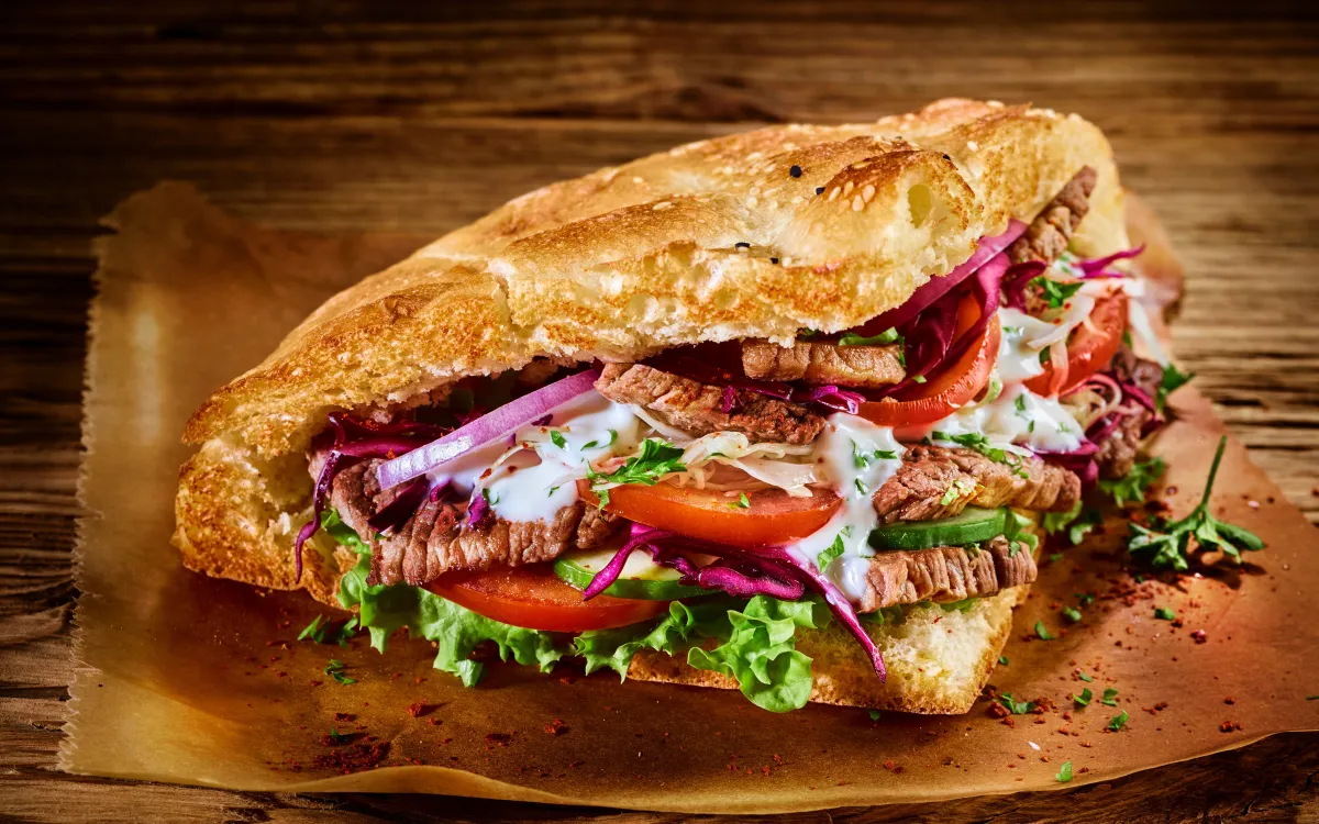 Tomaten, kaas, döner, kebab en gebakken uien.